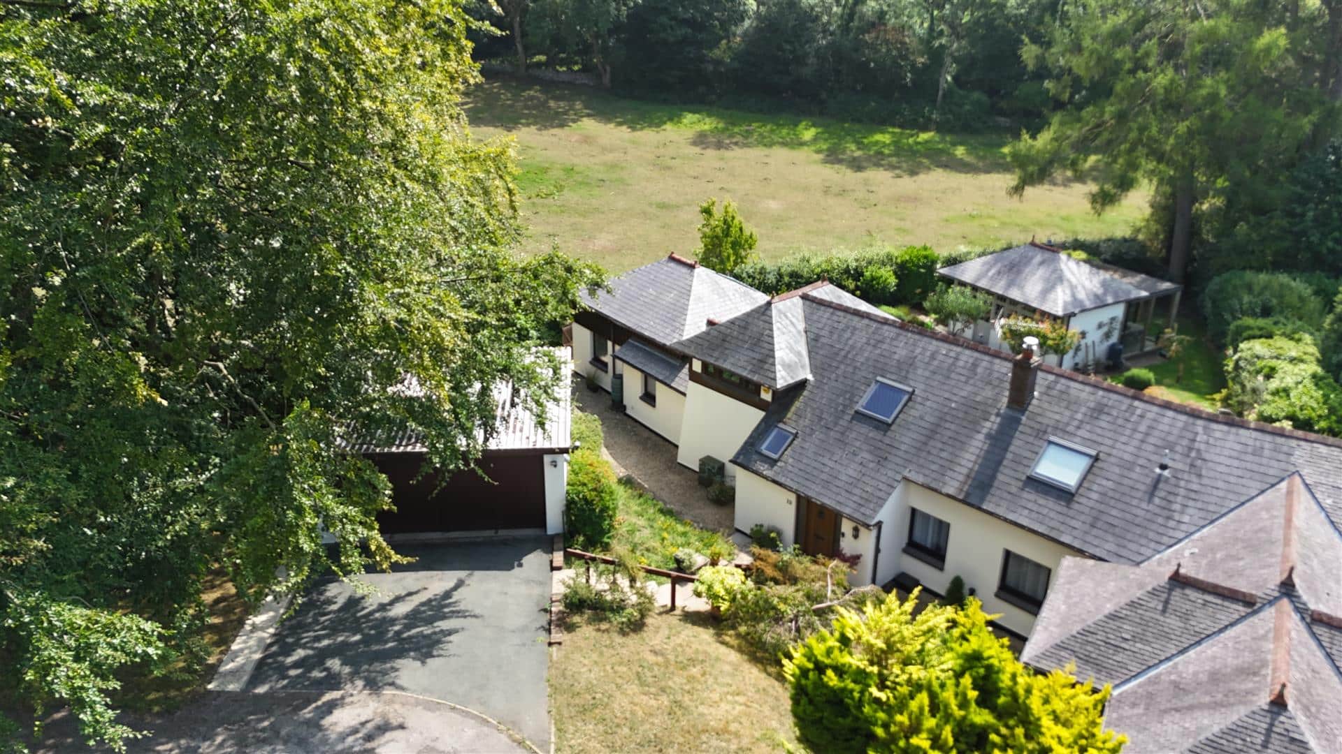 Completing the property to the front is a detached double garage, equipped with an electric vehicle charging point, alongside private parking for two additional vehicles.