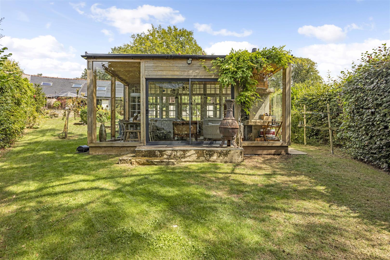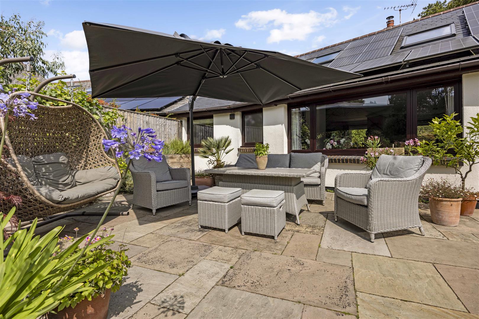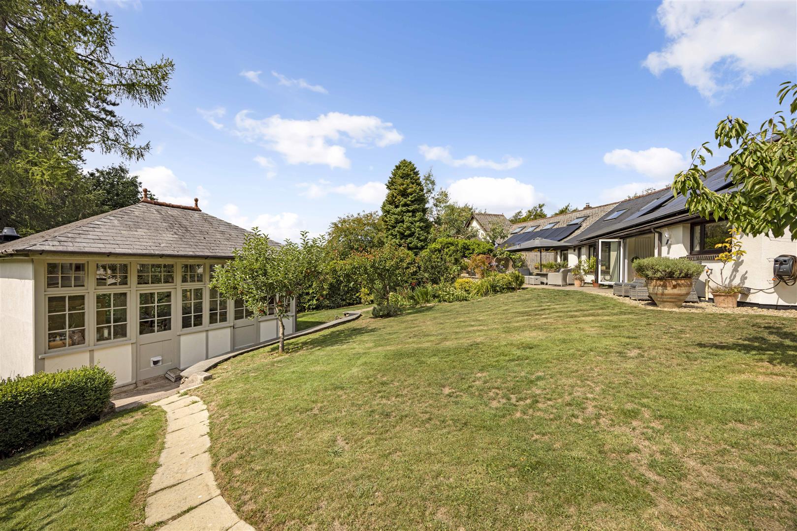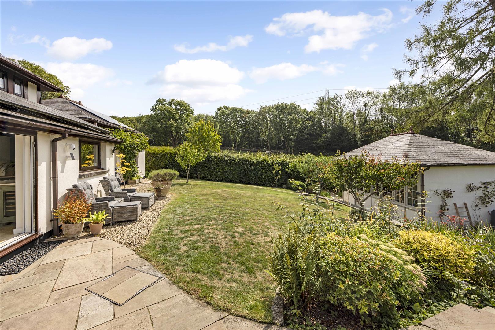 Outside, the gardens have been thoughtfully landscaped to create a setting that’s as functional as it is beautiful, offering the perfect backdrop for both al fresco entertaining and peaceful winter days. An abundance of mature planting, vibrant shrubs and fruit trees ensures colour, structure and interest all year round, delivering a garden that truly flourishes across the seasons.