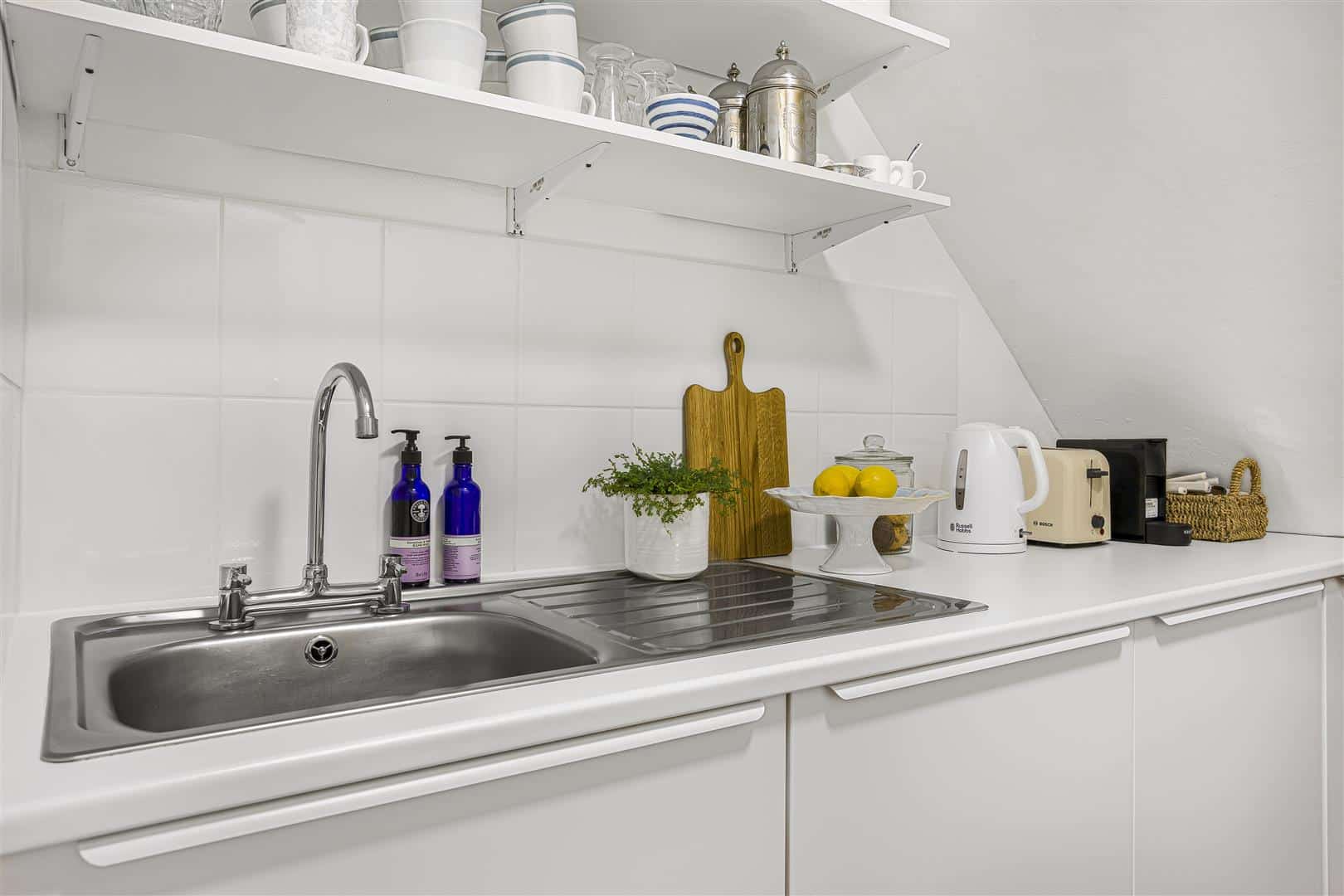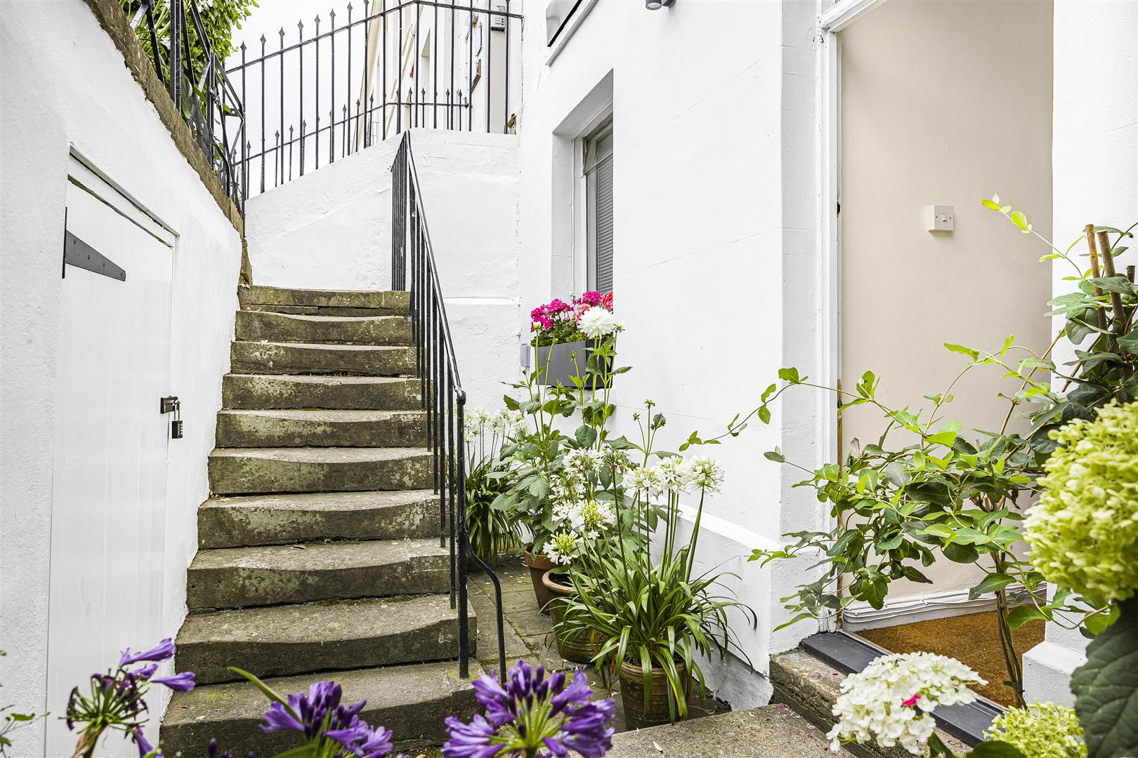 The exterior of Grove House is equally appealing. To the front, a private driveway provides off-street parking for several cars, a rare advantage in such a central location. To the rear, the courtyard garden offers a little haven of calm, accessed directly from the lower ground floor. Designed for low maintenance living, this private space is perfectly suited for quiet moments outdoors or for entertaining in the warmer months.