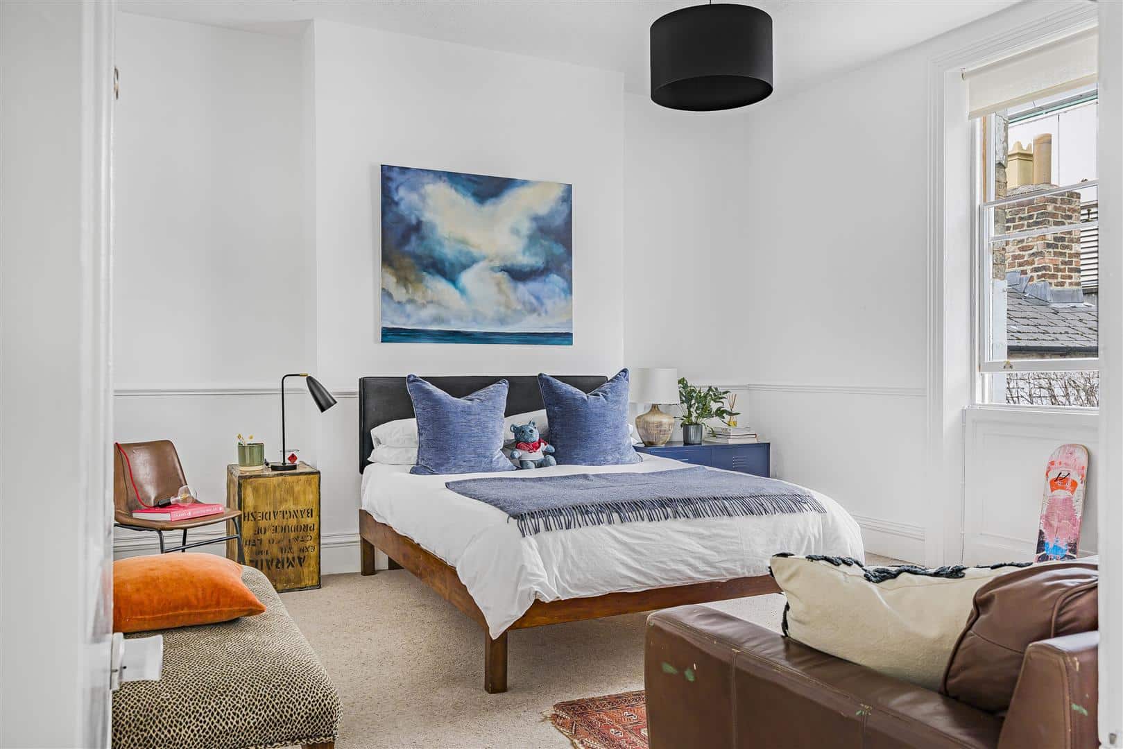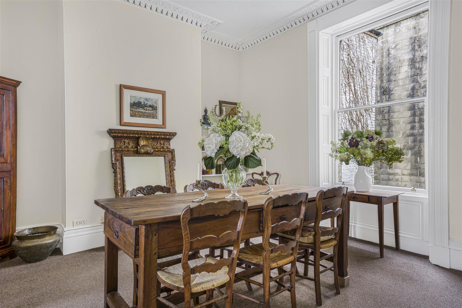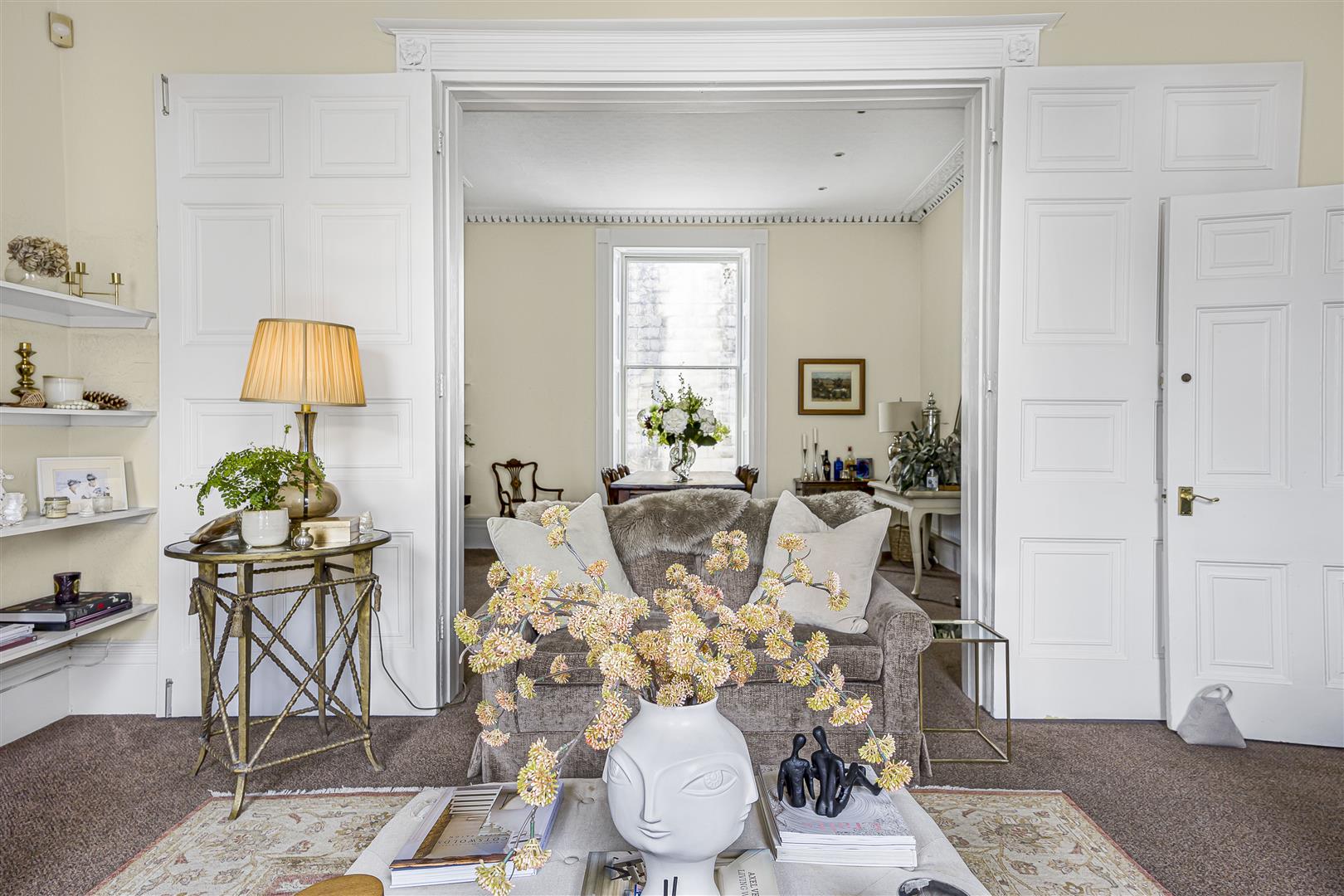 Across its three floors, Grove House already offers a wealth of versatile accommodation. On the raised ground floor, a formal drawing room with double doors leading to the current dining area sets the tone with high ceilings and original period detailing. From here, tall windows frame views over the courtyard and plans are in place to open these to create a balcony for outdoor connection.